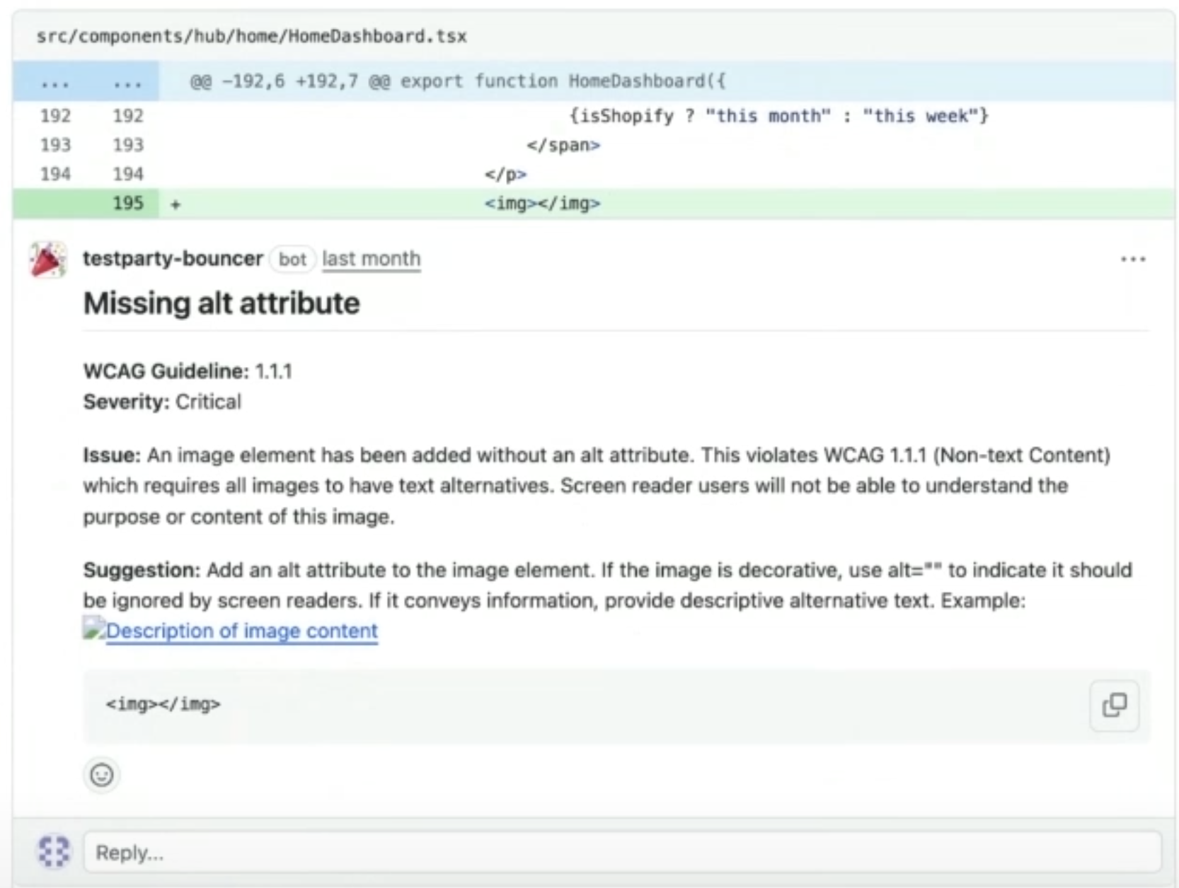 A simple test component (e.g., an image tag without alt text) to verify Bouncer is working.